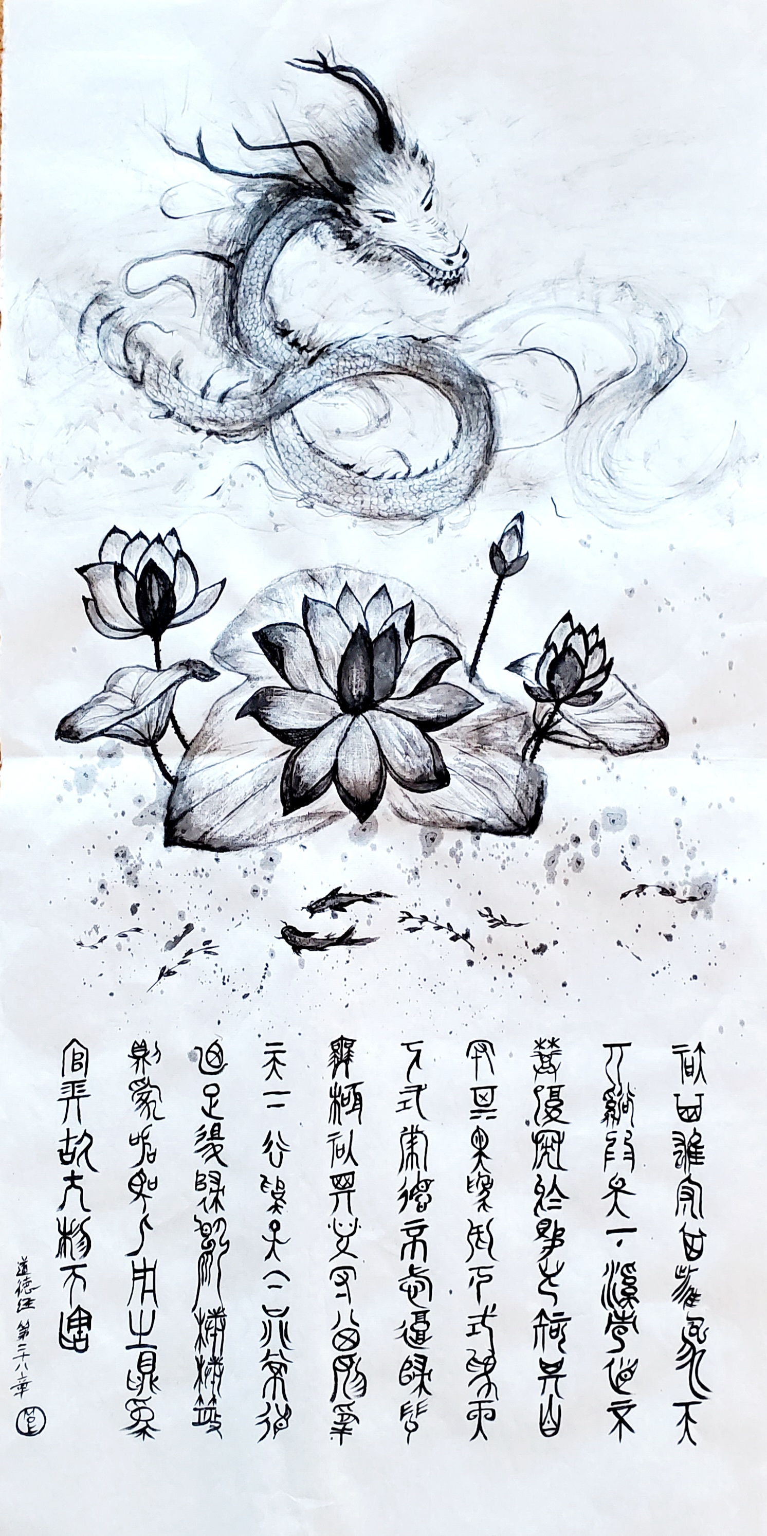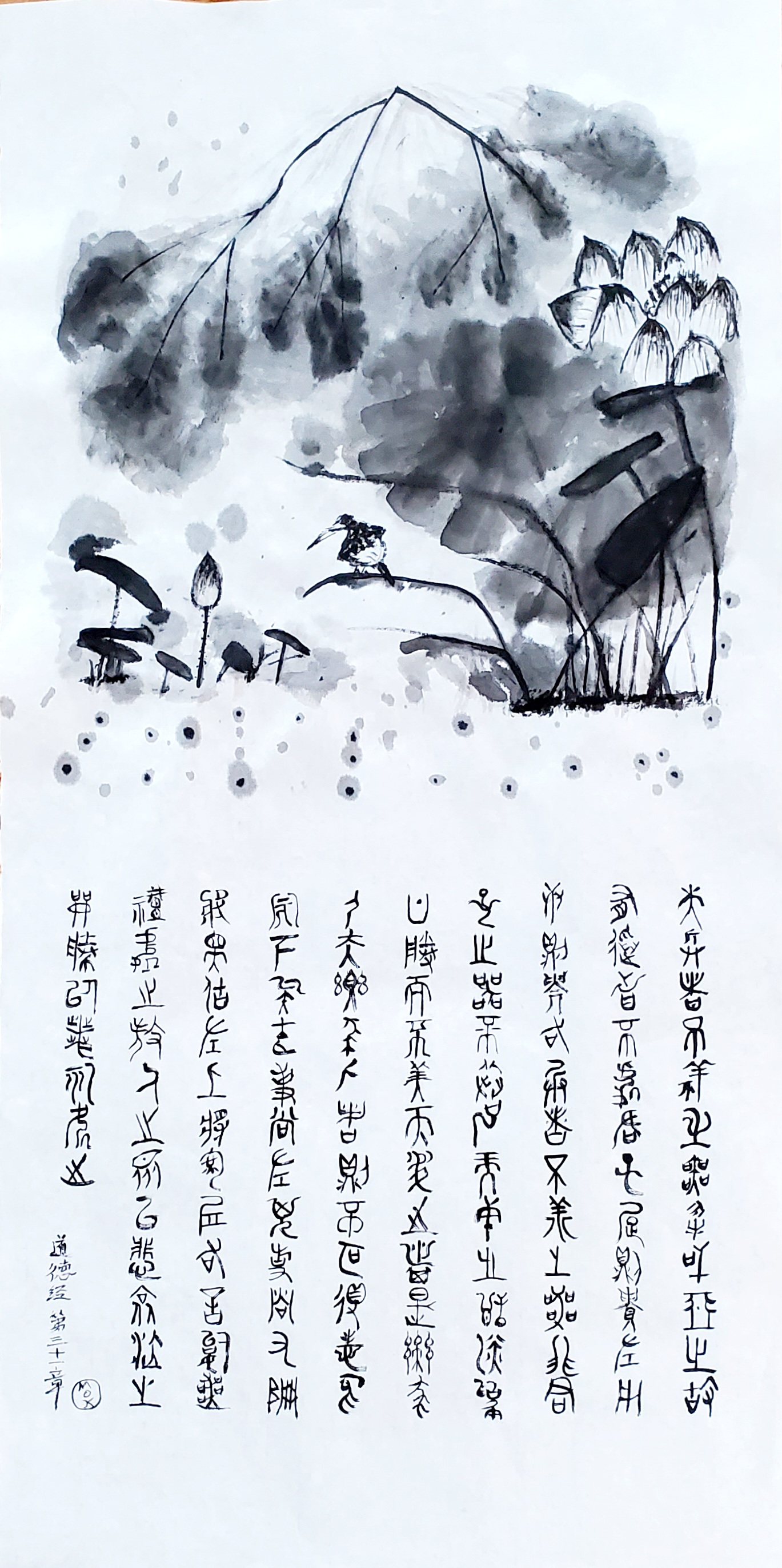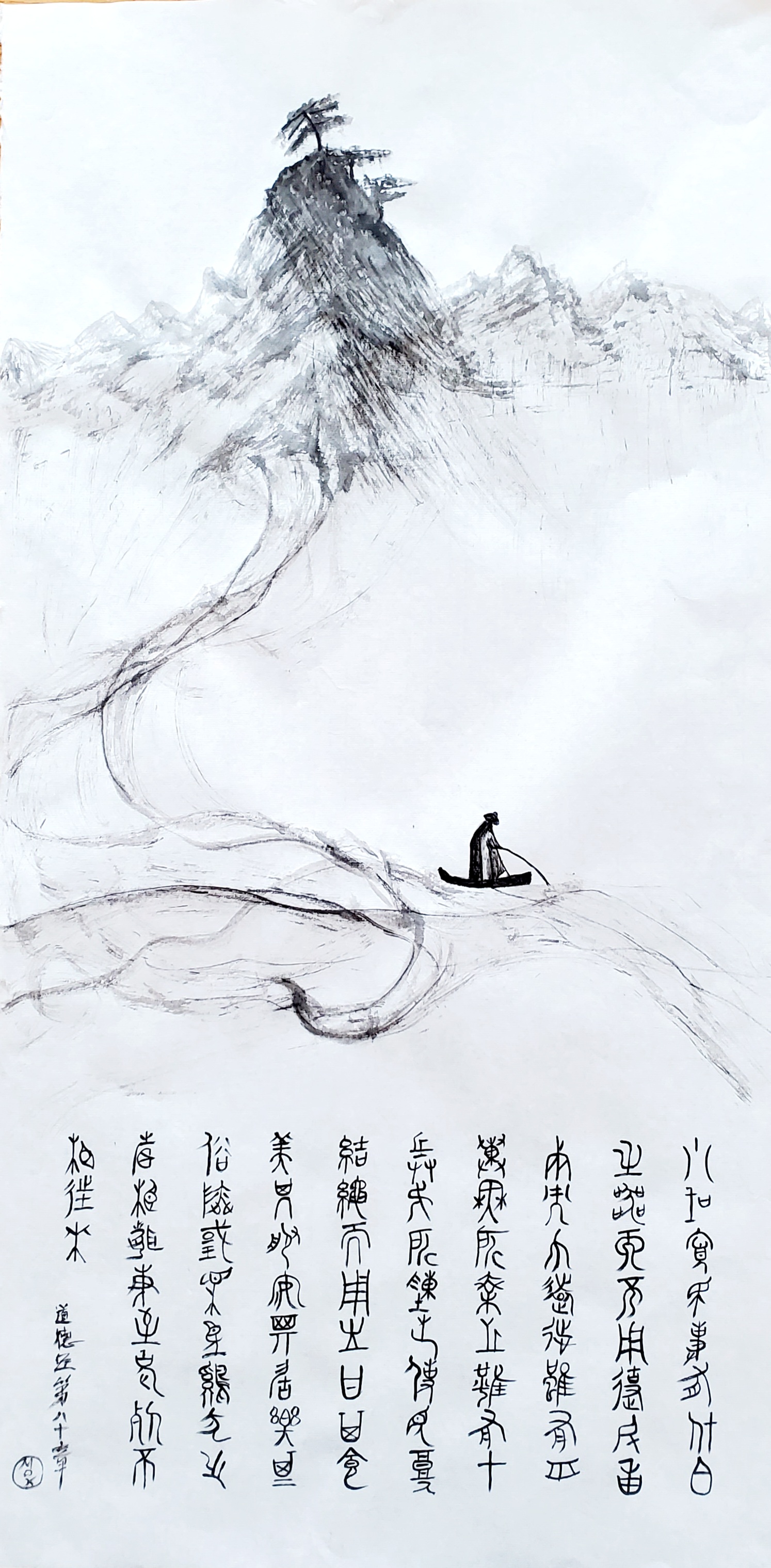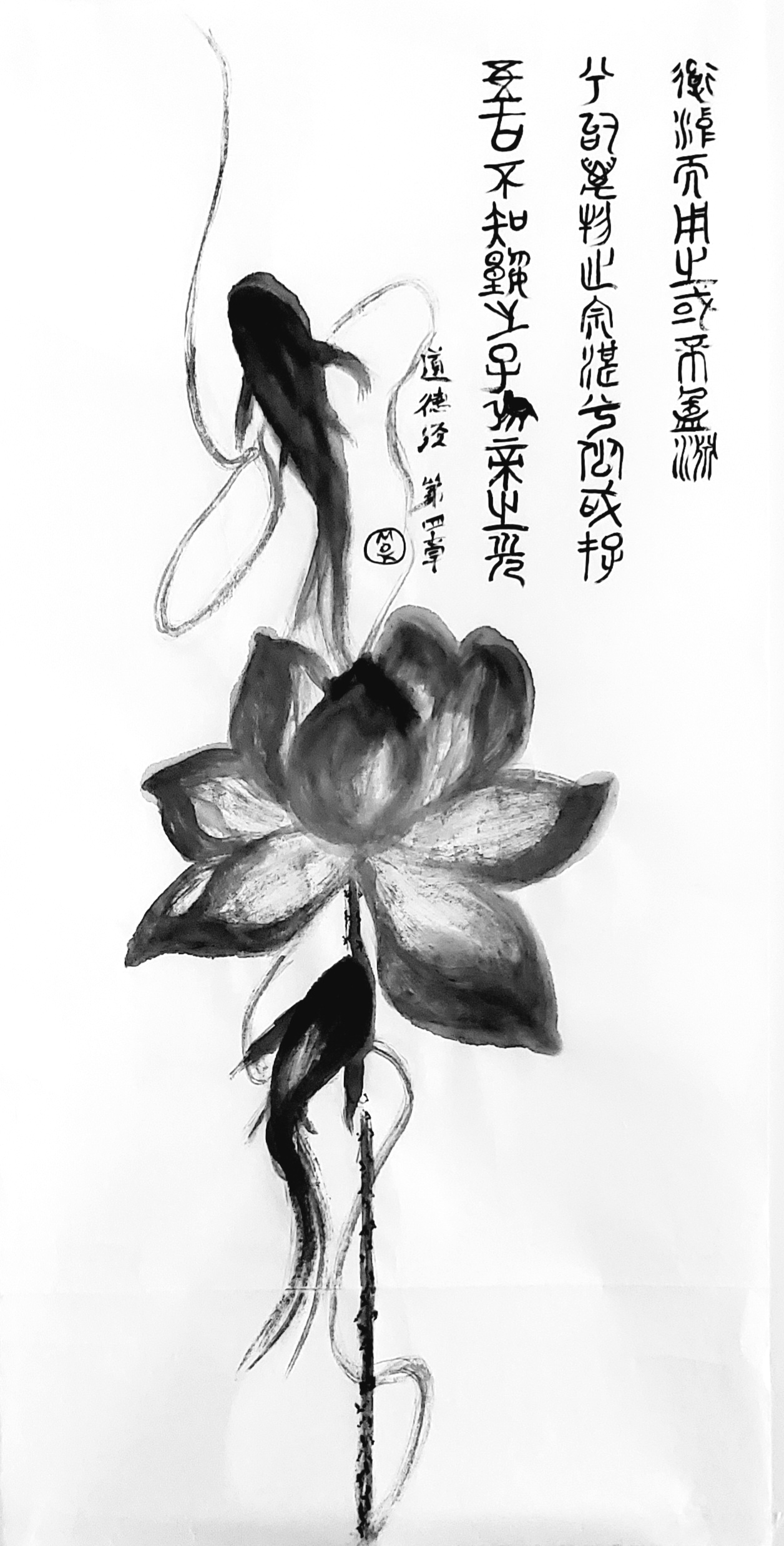 Calligraphy in Chinese: 道德經 -- 第4章. 道沖而用之或不盈, 淵兮似萬物之宗; 湛兮似或存。 吾不知誰之子,象帝之先。