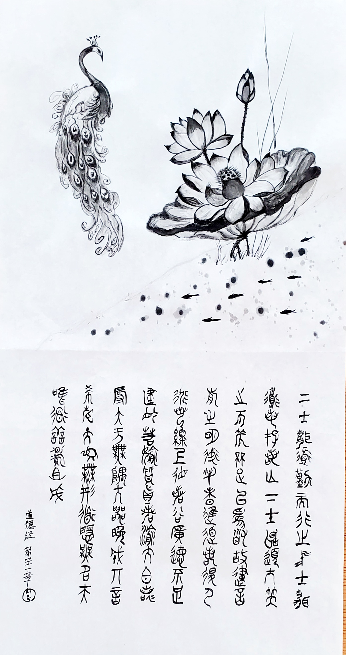 Calligraphy in Chinese: 道德經 -- 第1章 道可道、非常道。 名可名、非常名。 無名 天地之始。 有名 萬物之母。 故常無欲以觀其妙。 常有欲以觀其徵。此兩者同出而異名, 同謂之玄。 玄之又玄、 衆妙之門。