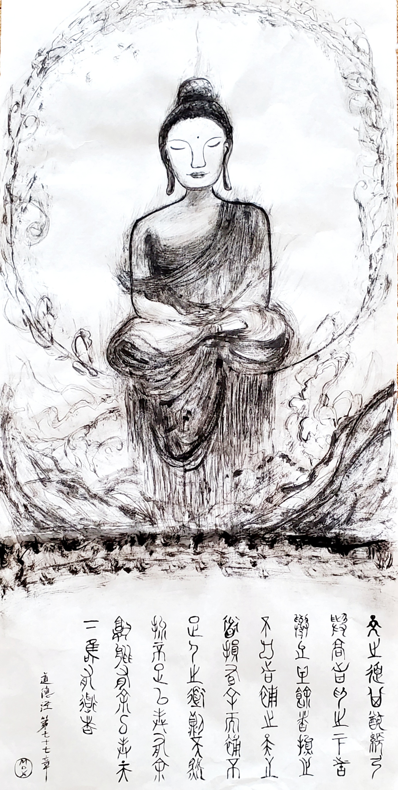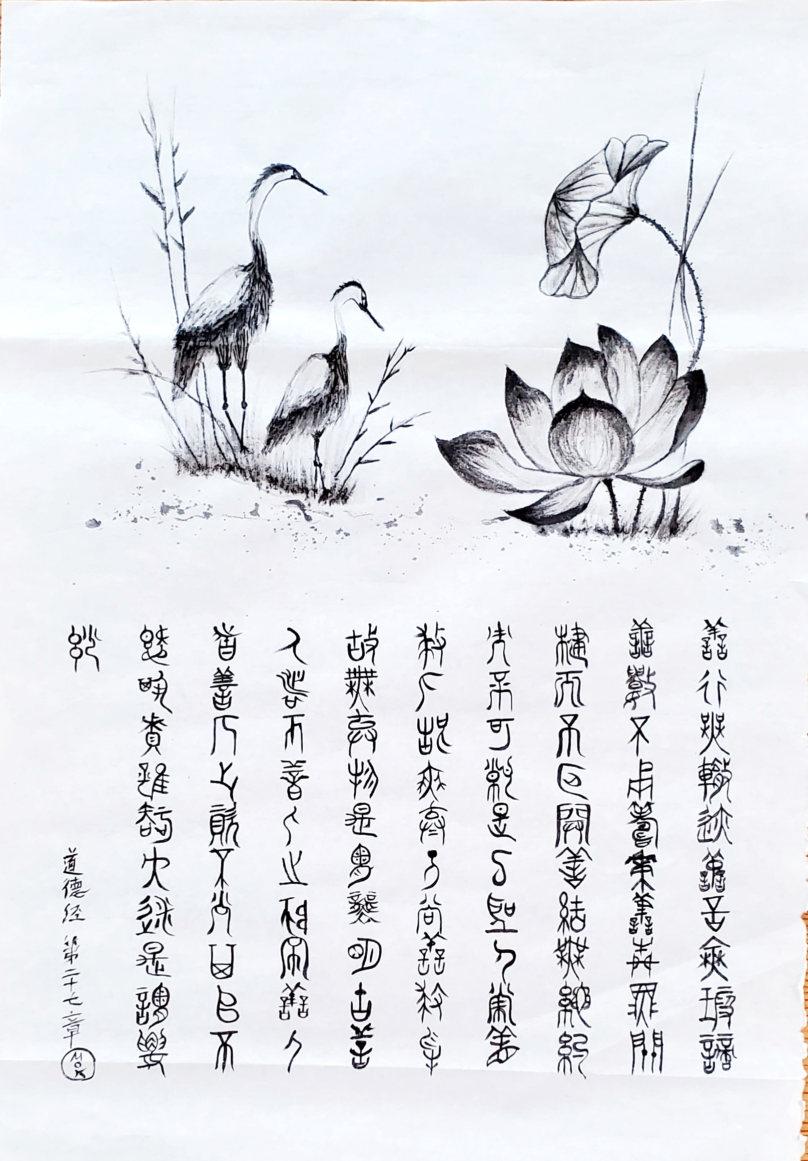 Calligraphy in Chinese: 道德經 -- 第7章. 天長地久。天地所以能長且久者,以其不自生,故能長生。是以聖人,後其身而身先,外其身而身存。非以其無私邪?故能成其私。