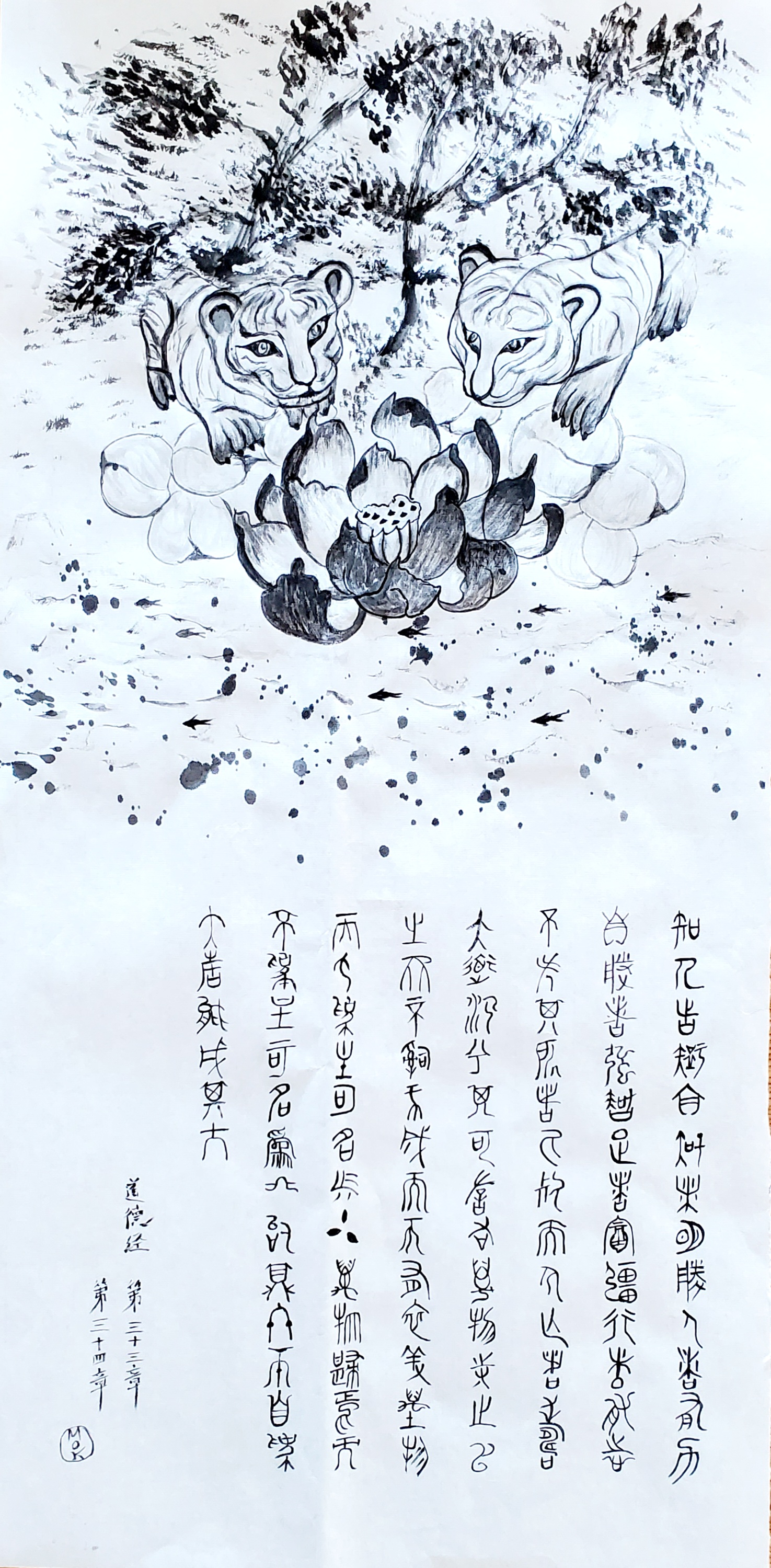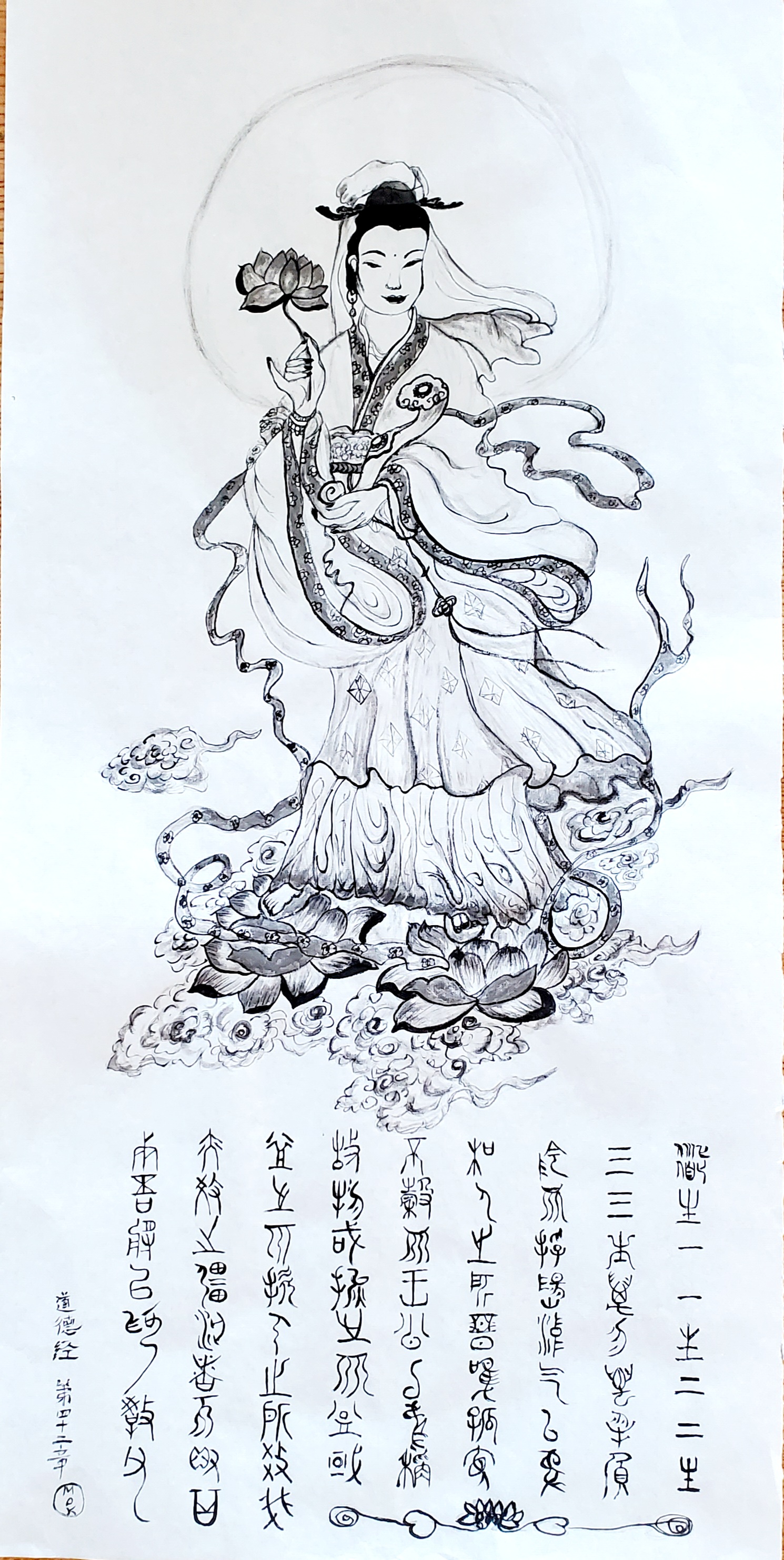 Calligraphy in English: Tao Te Ching -- 4th Verse. The Tao is like a well: Used but never used up. It is like the eternal void: It is hidden but always present. I do not know who gave birth to it. It seems to be the common ancestor of all, the father of things.