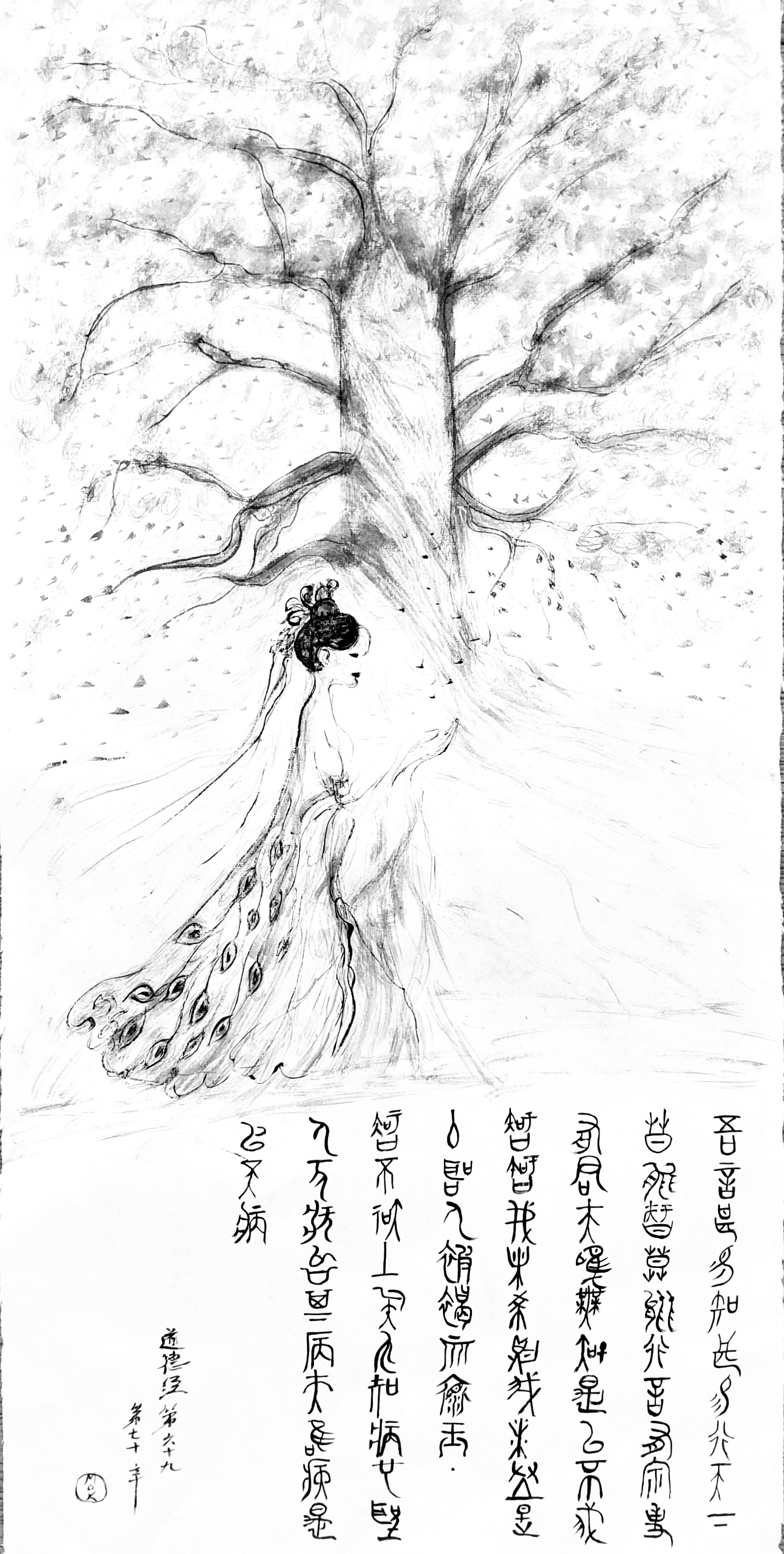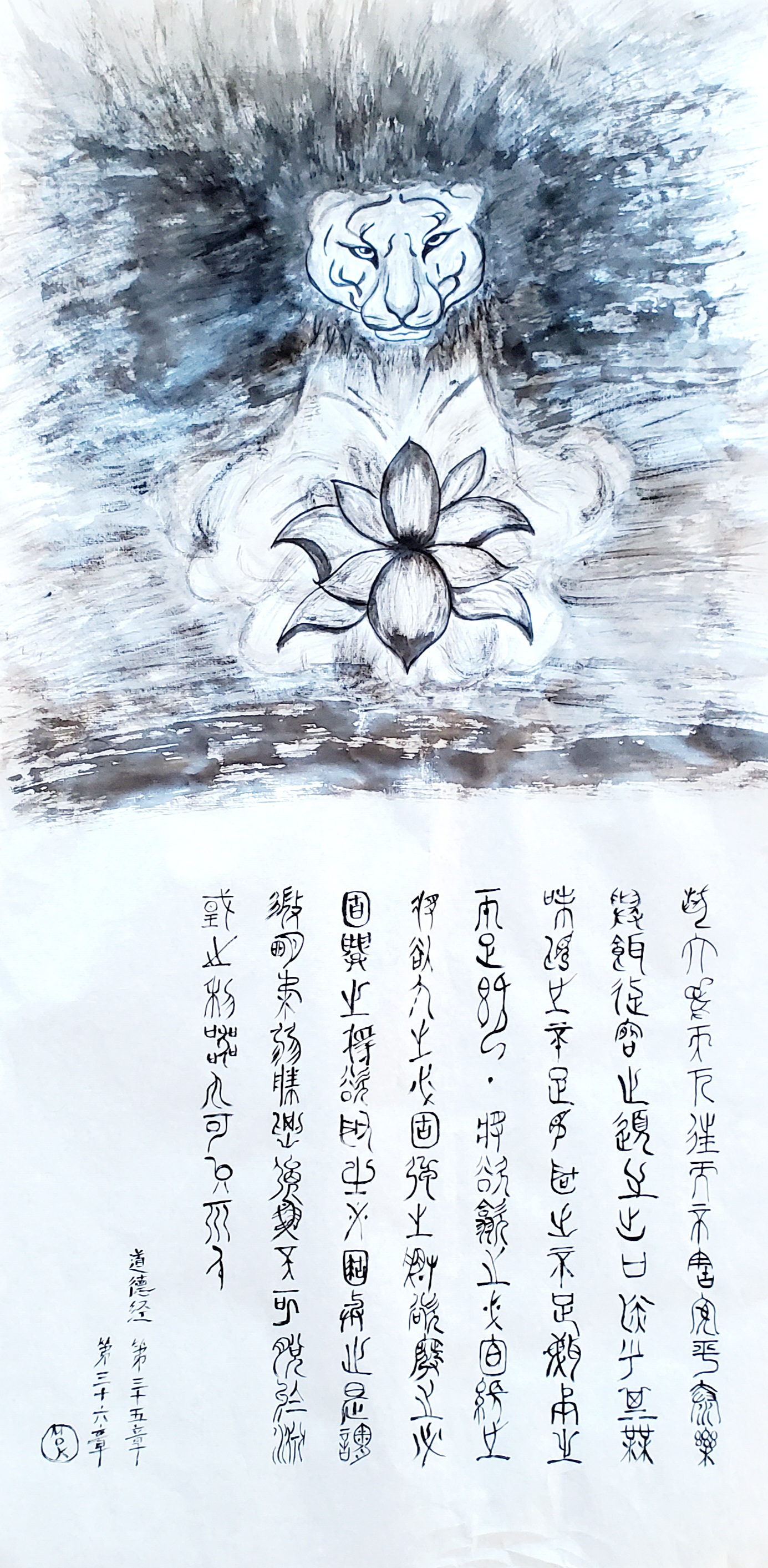 Calligraphy in Chinese: 道德經 -- 第31章. 夫佳兵者,不祥之器,物或惡之,故有道者不處。君子居則貴左,用兵則貴右。兵者不祥之器,非君子之器,不得已而用之,恬淡為上。勝而不美,而美之者,是樂殺人。夫樂殺人者,則不可以得志於天下矣。吉事尚左,凶事尚右。偏將軍居左,上將軍居右,言以喪禮處之。殺人之衆,以哀悲泣之,戰勝以喪禮處之。