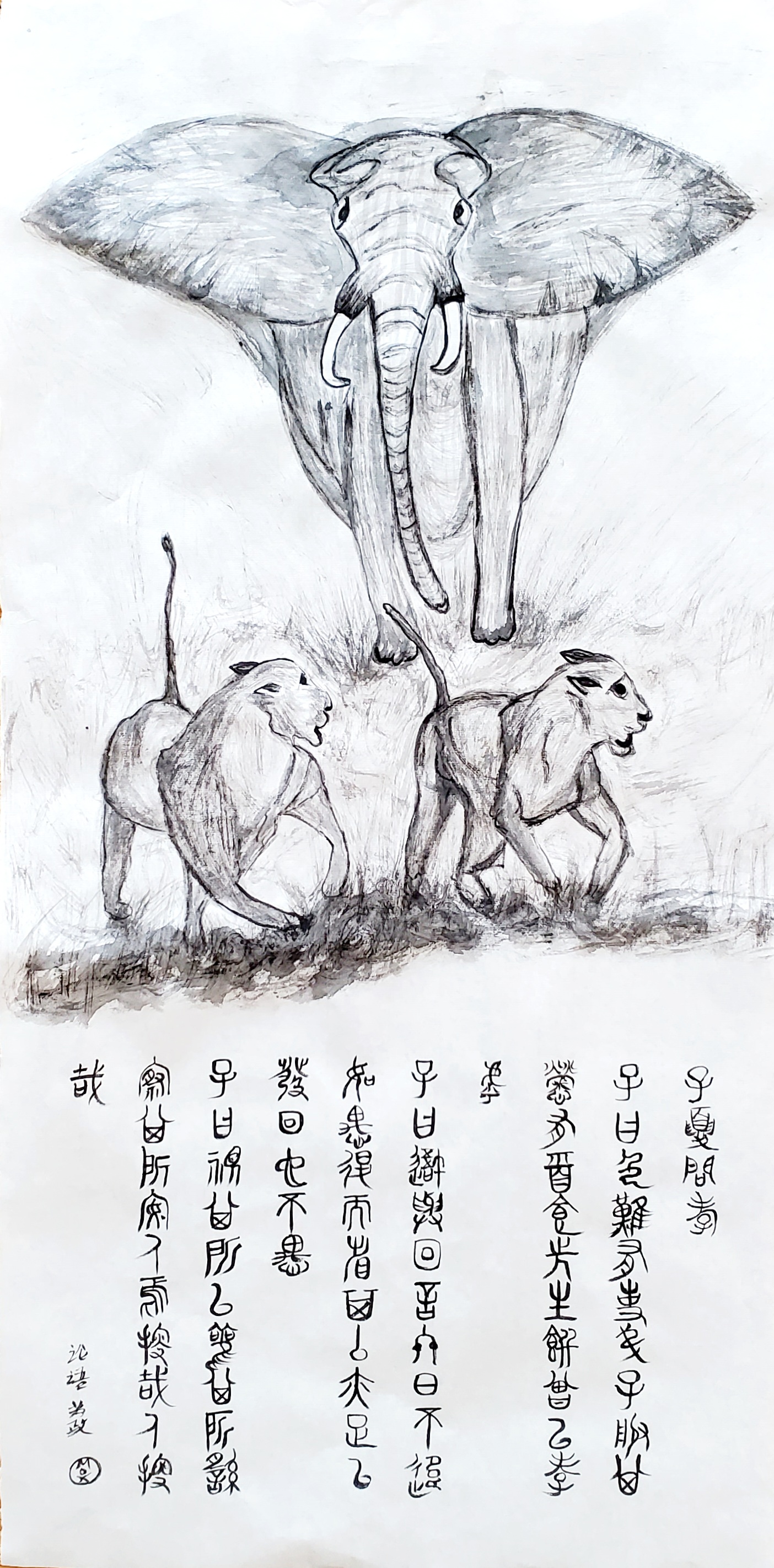 Calligraphy in English: 《The Class of Mountains and Seas》———Zhen Zhen (Bane)