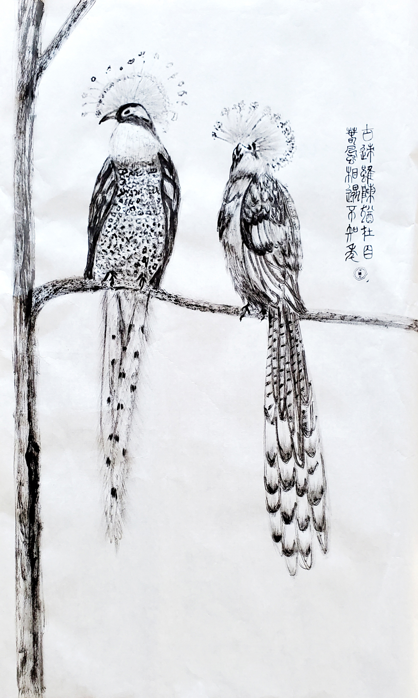 It is hard to meet but harder to separate. The east wind is powerless and the flowers are withered. A spring silkworm may not stop spinning silk until death, and the wax torch will not dry until it turns ashes. In the morning’s bronze mirror, you worry about the change in your hair, and you feel the moonlight cold, reading alone in the night. There is little way to get to Pengshan, and the bluebirds diligently visit.